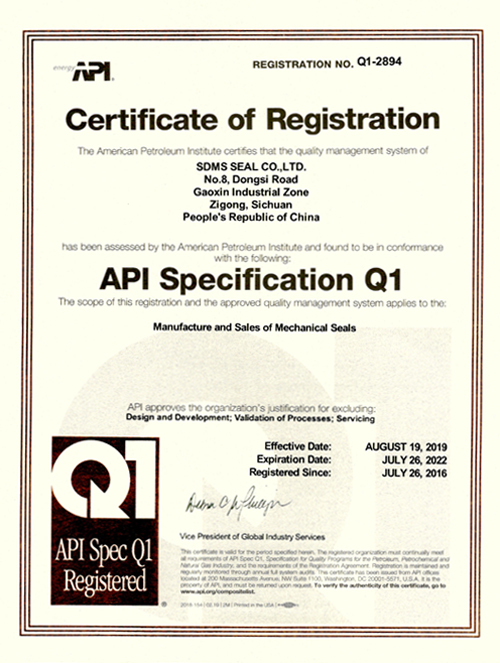 ???????2019年8月我公司再次通過(guò)審核并獲得API Q1質(zhì)量管理體系證書。???