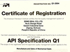 2019年8月31日,美國石油學(xué)會向我公司再次頒發(fā)API Specification Q1證書(Registration No.Q1-2894)。